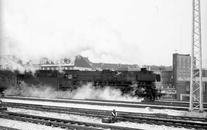 01 1079, Anfahrt vor D 394, dampft aus Zylinderventilen; Bf Münster Hbf