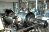 | Beschreibung | Eine liegende Einzylindermaschine mit Gabelrahmen, Lentz-Ventilsteuerung und Achsenregler. Vom geteilten Riemen-Schwungrad wird ein Generator angetrieben. Der Drehstromgenerator von der AEG neueren Baujahrs hat die Daten: Typ DGKLA 295/10, Nr. 67459413, U= 400 V, I= 195 A, 135 kVA, n= 600 U/min, mit angeflanschter Erregermaschine. Auf der anderen Seite des Schwungrads ist eine liegende, einzylindrige Kältemaschine von Linde Nr. 6380, Type 2350, Baujahr 1936. - Die Dampfmaschinen-Drehzahl ist für +/- 5% vorgesehen. Die Manometertafel mit Manometern von Schäffer & Budenberg ist an der Wand angebracht; die Bedienelemente sind in einer Bodensäule zusammengefaßt. |